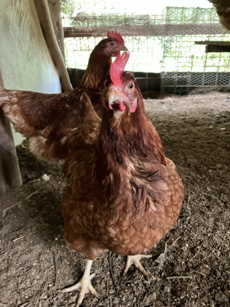寒さが本格的になってきて、鶏たちも冬じたくを始めています。わかりやすいのが羽毛です。徐々に冬の毛へと生え変わり、夏よりも一回りふさふさしています。その代わり、床には抜けた毛がたくさん。この毛も床の発酵菌で分解されて徐々に見えなくなっていきます。